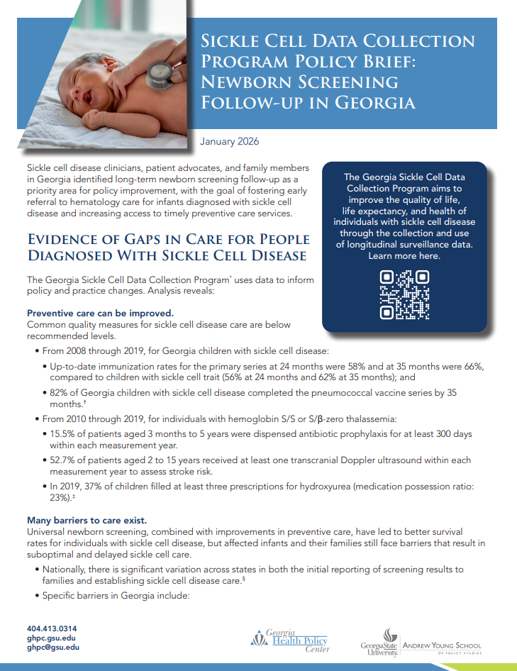 Sickle Cell Data Collection Program Policy Brief: Newborn Screening Follow-up in Georgia April, 2026January, 2026 View Full Brief Categories: Briefs